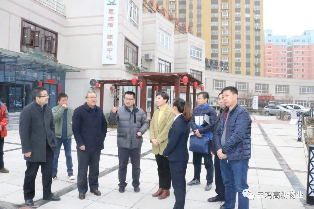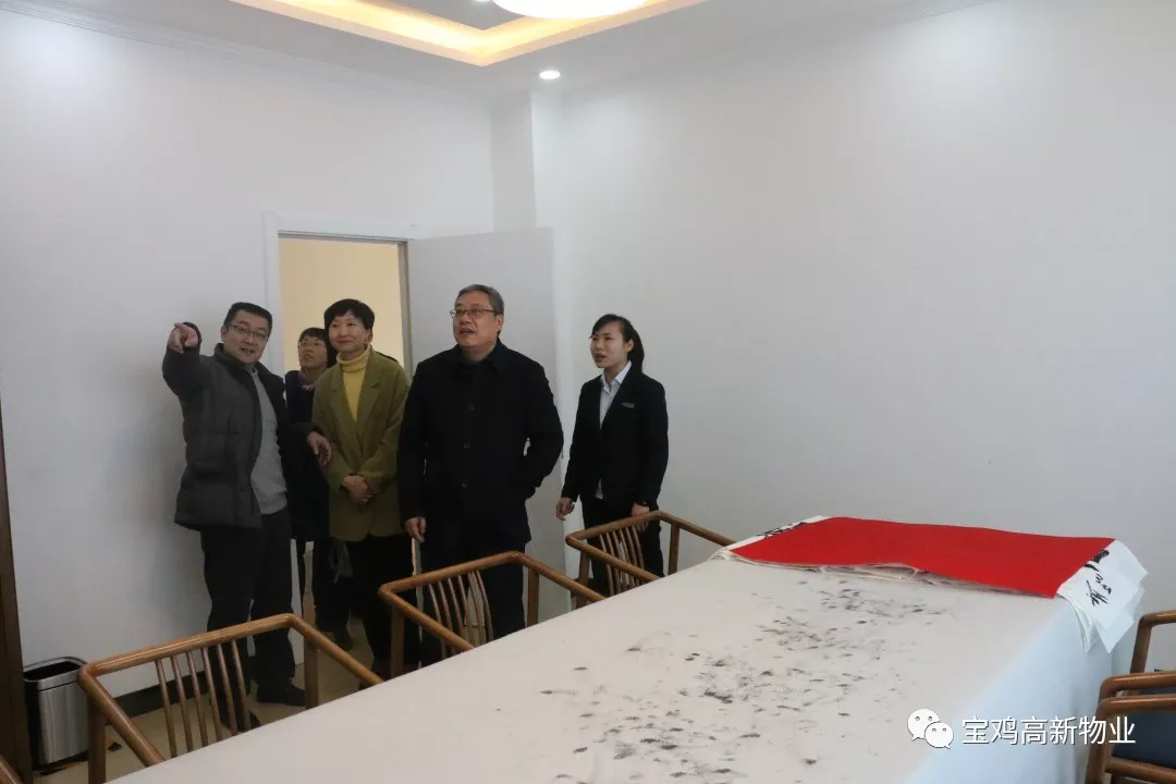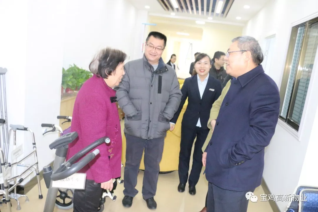 2019年2月27日上午,寶雞市財(cái)政局副局長張力潔、市民政局副局長祁鵬程、社會(huì)福利和慈善促進(jìn)科科長馮華等領(lǐng)導(dǎo)一行蒞臨寶雞高新總公司下屬寶雞高新物業(yè)管理有限公司“寶雞惠生活養(yǎng)老服務(wù)中心”調(diào)研。高新區(qū)管委會(huì)社會(huì)事業(yè)局局長李廣強(qiáng)、高新總公司等領(lǐng)導(dǎo)陪同。