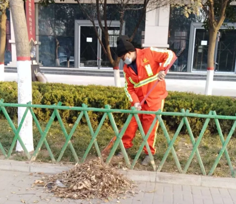 環(huán)衛(wèi)工全力清除綠化帶內落葉