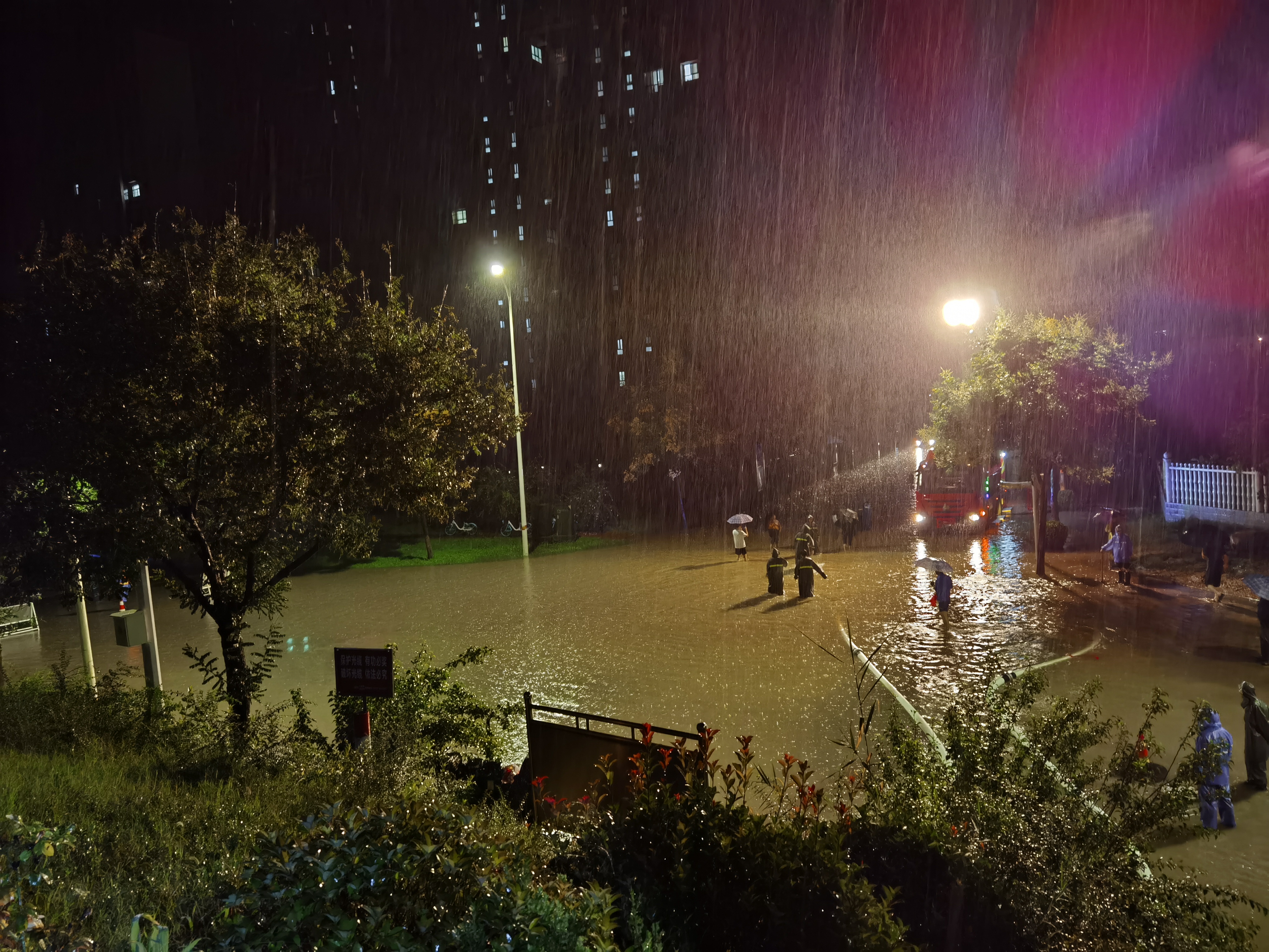 高新園林環(huán)衛(wèi)公司出動人員57人,巡查作業(yè)車8輛,對天下匯、寶鈦家園門口、西寶南線10~14路及公園廣場6個重點(diǎn)積水點(diǎn)位通宵作業(yè),全力保障轄區(qū)道路順暢和市政設(shè)施安全有效,并對返水淤泥比較嚴(yán)重路段進(jìn)行沖洗清理。